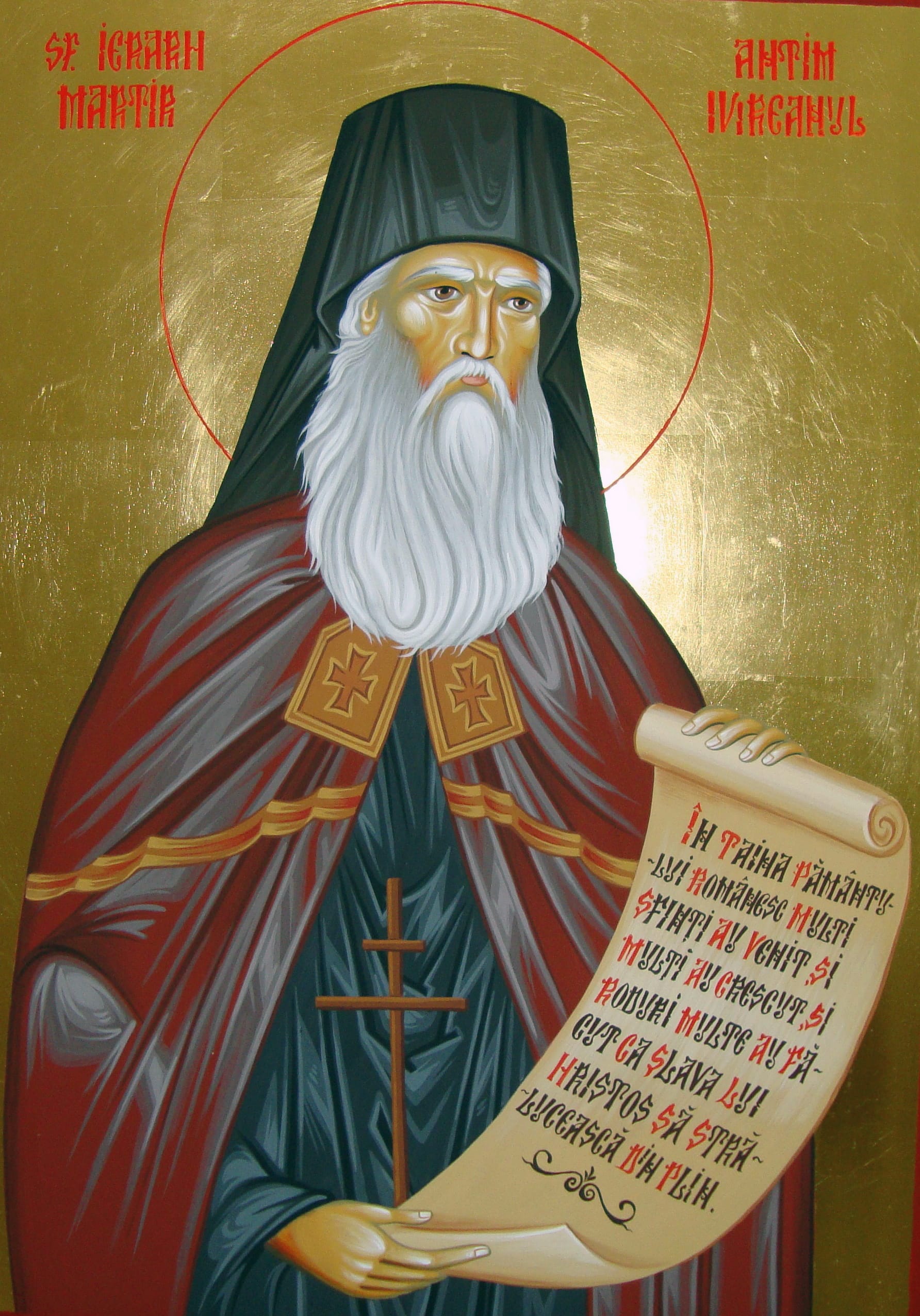 Sfinte Părinte Ierarhe Antim, după vrednicie ai fost rânduit păstor şi învăţător turmei tale, şi cu înţelepciune dumnezeiască ai revărsat râurile sfintelor tale cuvinte. Viaţa ai pus-o pentru păstoriţii tăi şi cununa muceniciei ai dobândit de la Hristos Dumnezeu, pe Care roagă-L, Sfinte Părinte Ierarhe Antim, să dăruiască pace şi mare milă celor ce săvârşesc sfântă pomenirea ta.